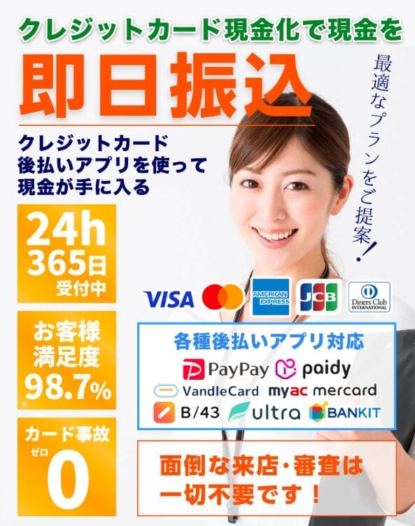 もしこれを聞いて「規約違反はイヤだな…」と思ったら、利用停止トラブルを気にせず安全に現金化できる専門店を利用しましょう。